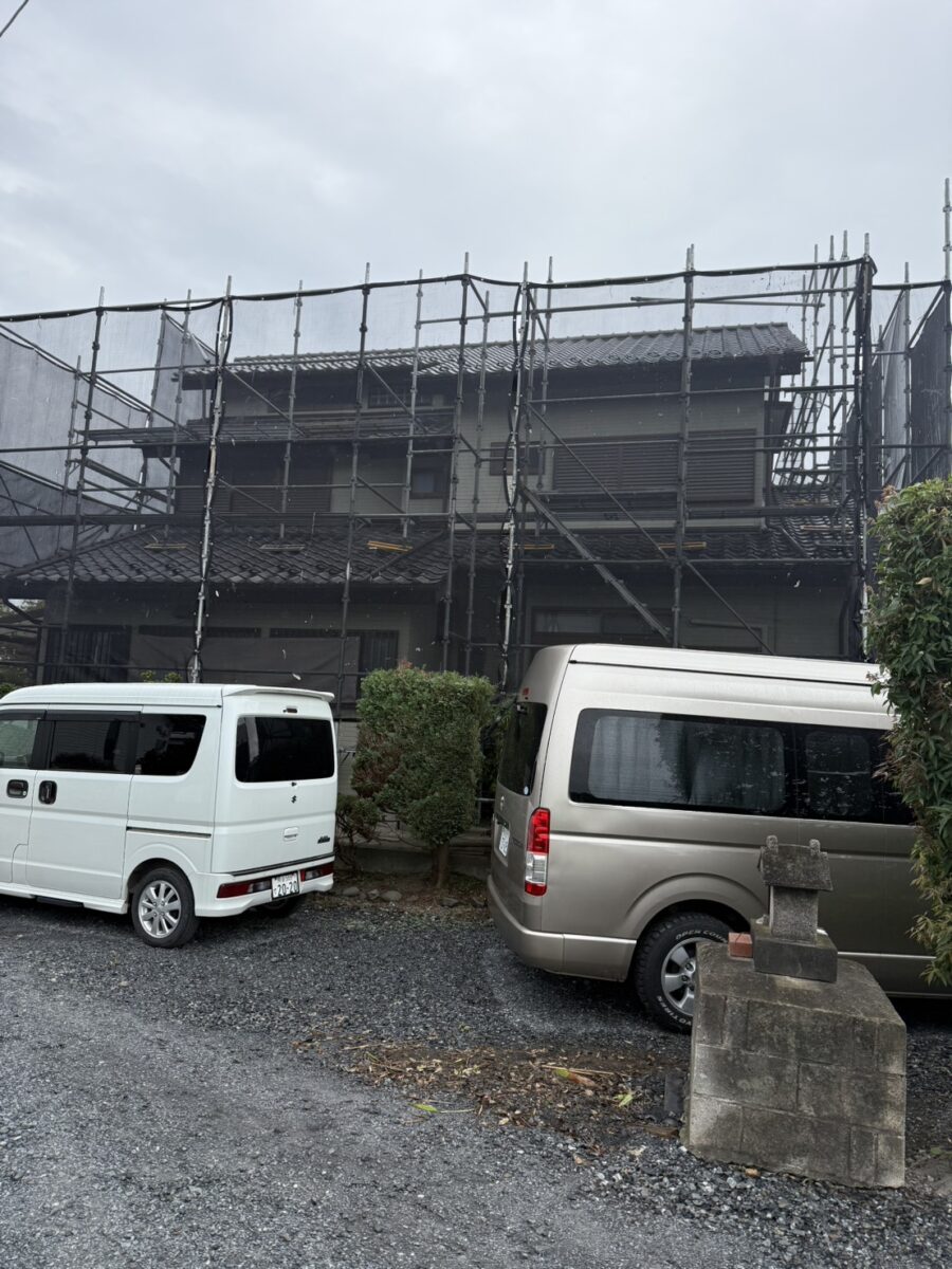 埼玉県本庄市。 外壁塗装工事 仮説足場組み立て工事。