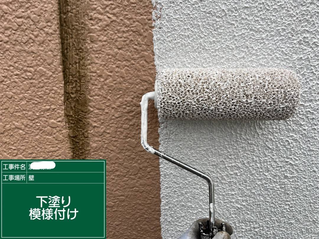 補修したクラックの痕が目立たない為に、鎖骨ローラーを使用して下塗りを行いました。