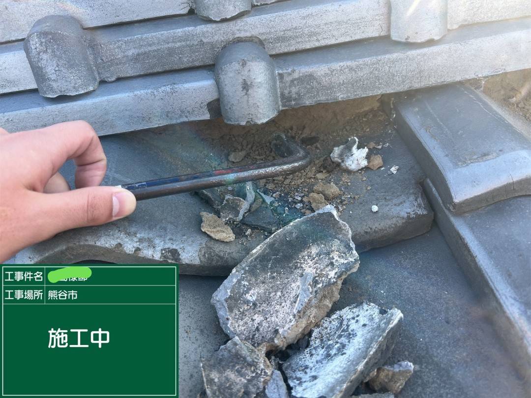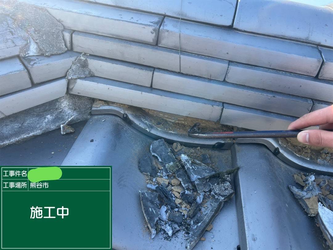 埼玉県熊谷市。 瓦屋根補修工事。 漆喰工事。