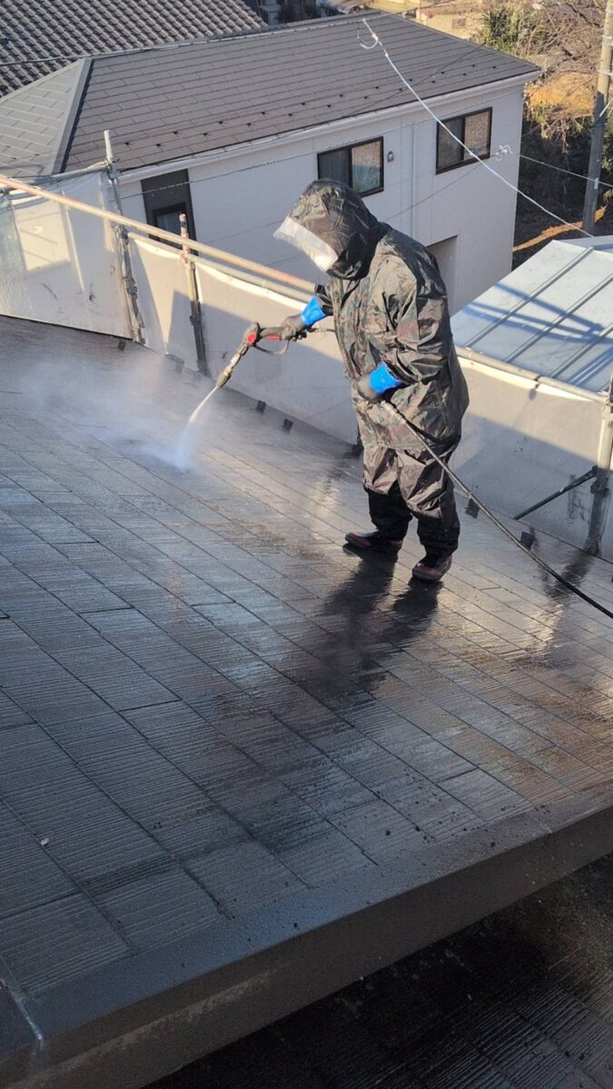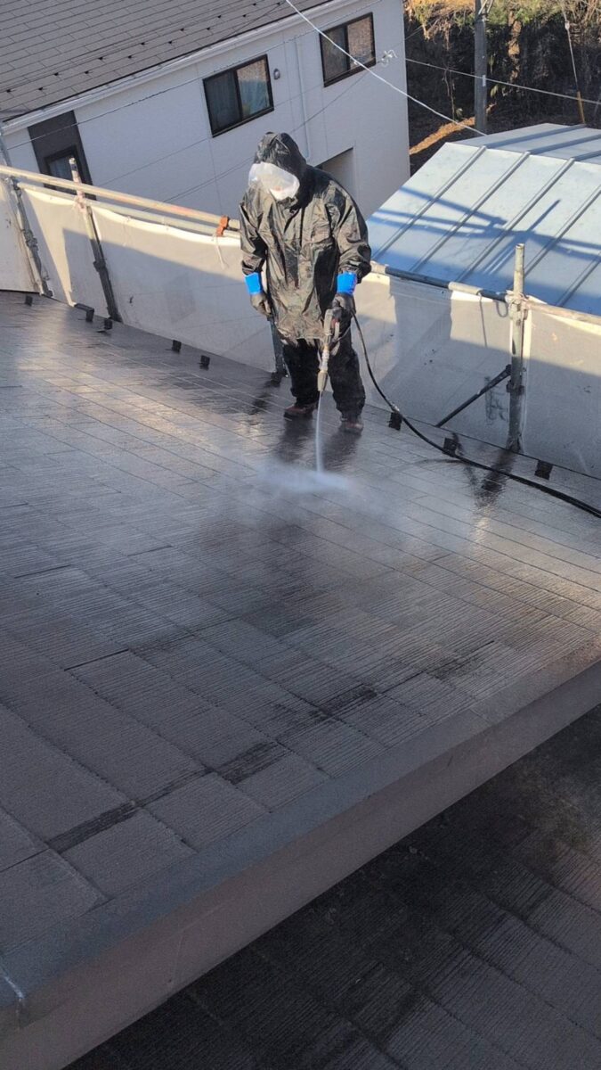 屋根の汚れや生息してしまった苔や、古い塗膜を落とす為に行います。