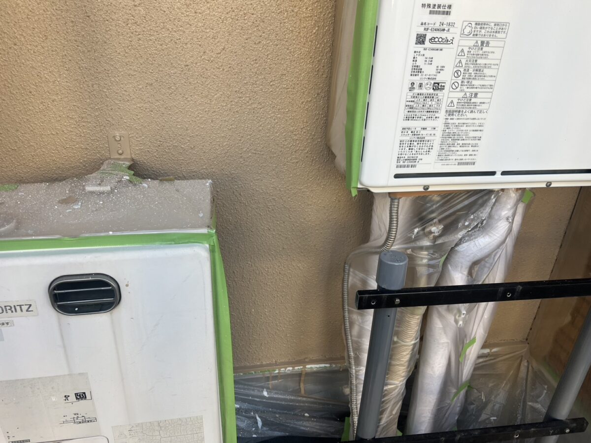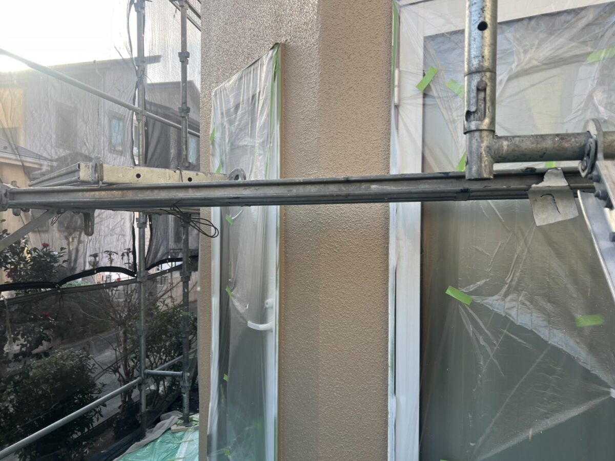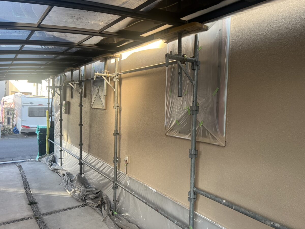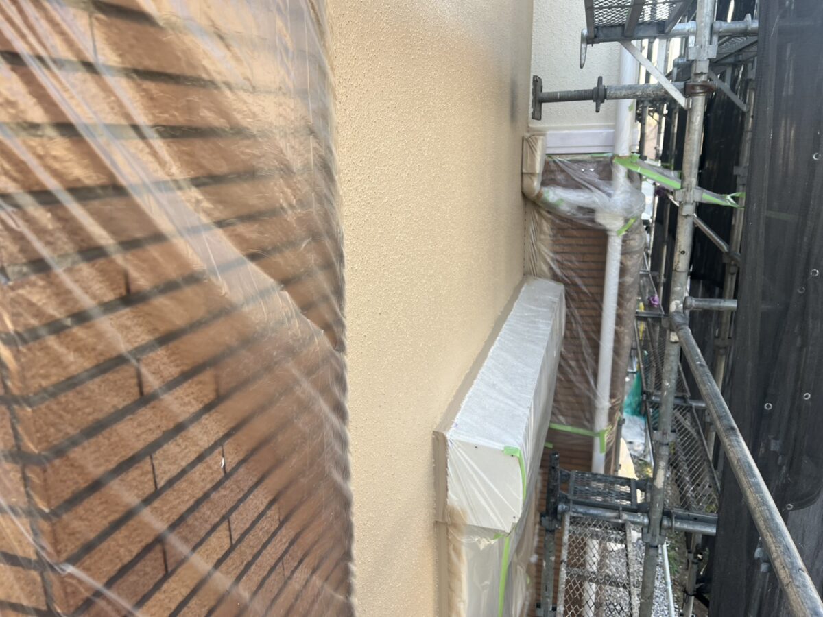 外壁塗装の中塗りと一部上塗りの施工を行いました。