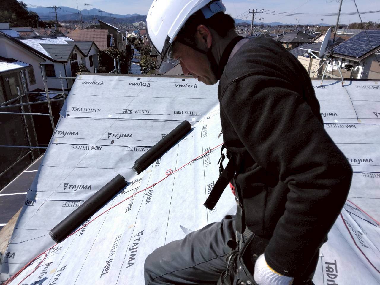 ゴムアスファルトルーフィングを敷き込む事に依って、屋根の防水性能を高める効果が有ります。