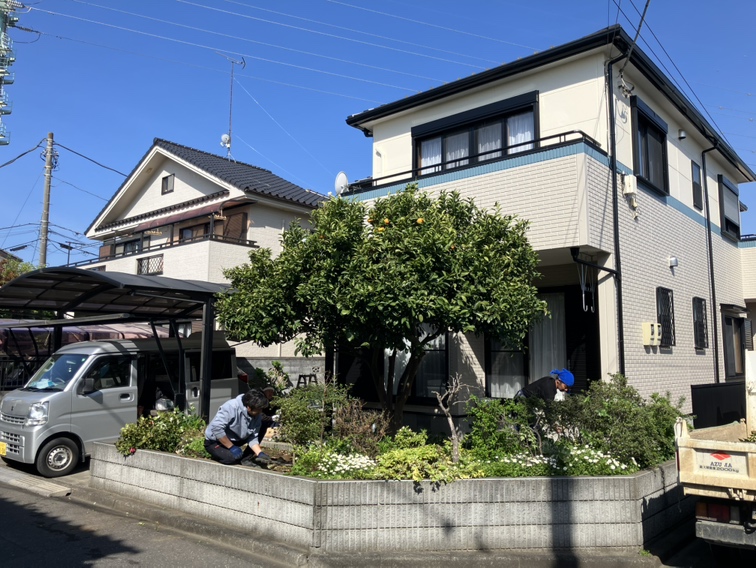 埼玉県北本市。 外構工事。 既存植栽撤去及び土鋤取り工事。