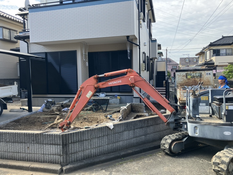 本日は埼玉県北本市で外構工事の工程で、